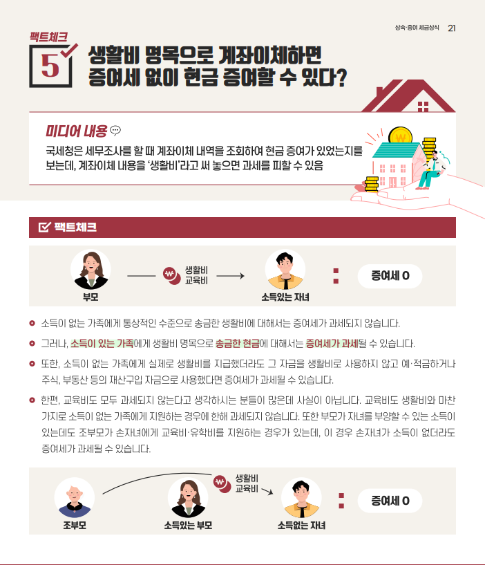 5. 생활비 명목으로 계좌이체하면 증여세 없이 현금 증여할 수 있다?