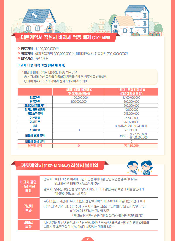 주택을 취득하거나 양도할 때 다운계약서 또는 업계약서를 작성하면 양도소득세 비과세 및 감면이 배제된다는 내용입니다.
