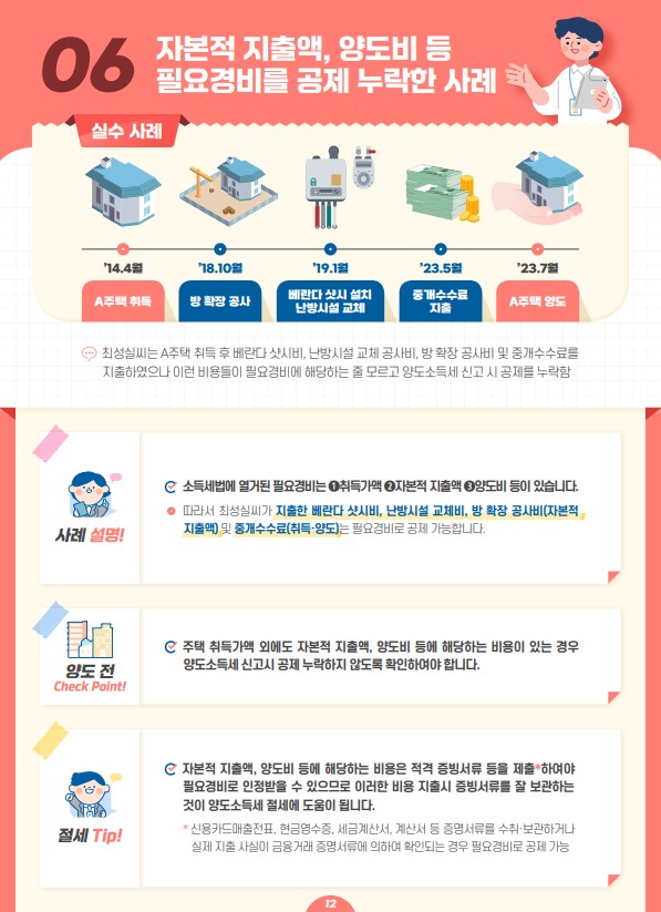 - 자본적 지출액, 양도비 등 필요경비를 공제 누락한 사례