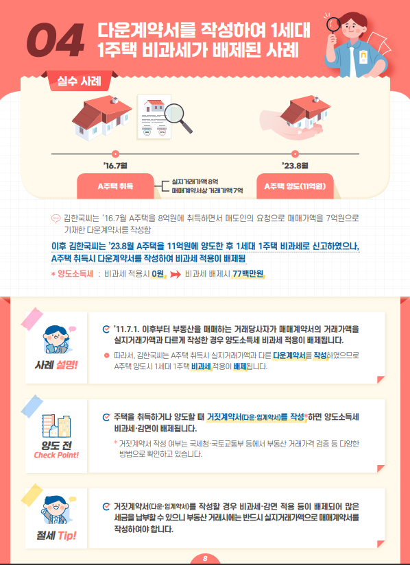 - 다운계약서를 작성하여 1세대 1주택 비과세가 배제된 사례